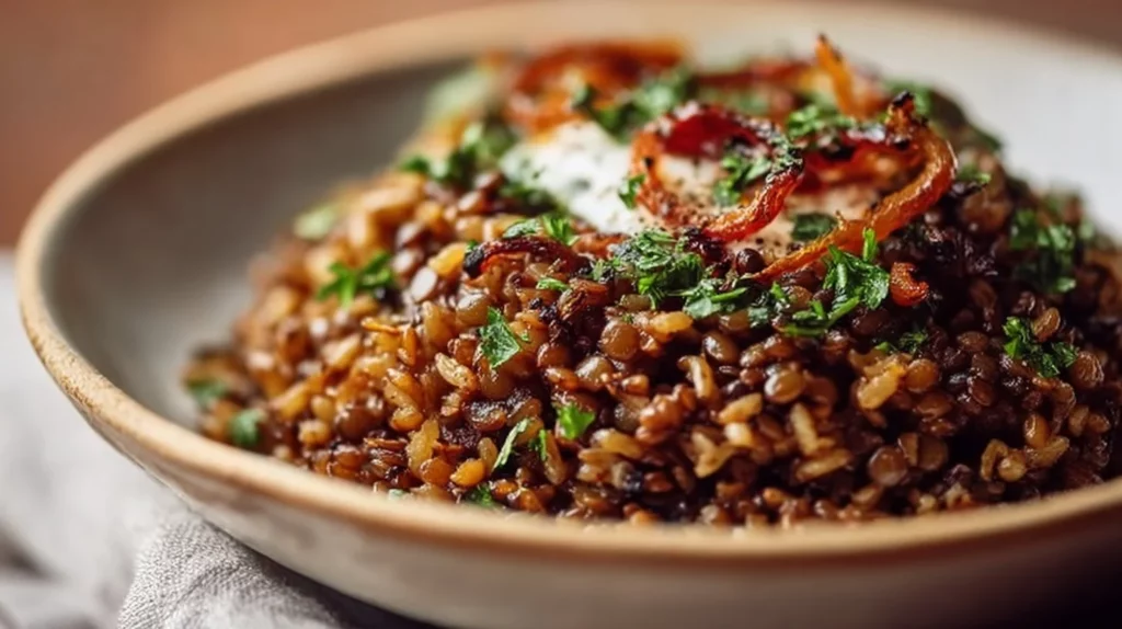 En somme, ce mélange harmonieux de lentilles et de riz, agrémenté de la présence réconfortante d’oignons frits, est bien plus qu’un simple plat. C’est une invitation à un voyage sensoriel où chaque bouchée raconte une histoire. Que ce soit pour un dîner en semaine ou pour un repas festif, cette recette captivera vos invités, tout en restant accessible et délicieuse à préparer. Laissez-vous séduire par cette expérience culinaire qui ne manquera pas de devenir un classique dans votre cuisine !