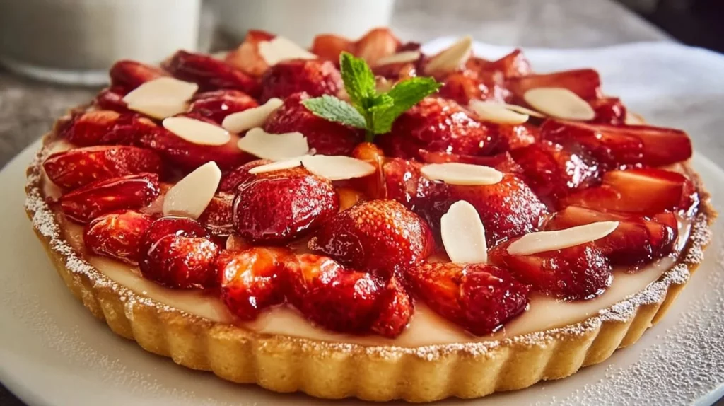 Cette tarte aux fraises avec pâte sablée aux amandes est le choix parfait pour quiconque souhaite impressionner ses invités tout en se faisant plaisir. Que vous la serviez pour un événement spécial ou pour un simple café entre amis, elle ne manquera pas de séduire tous les palais. Sa réalisation est à la portée de tous, et les résultats sont à la fois visuellement époustouflants et délicieusement savoureux. N’hésitez pas à essayer cette recette et à la partager autour de vous : c’est du bonheur à chaque bouchée !